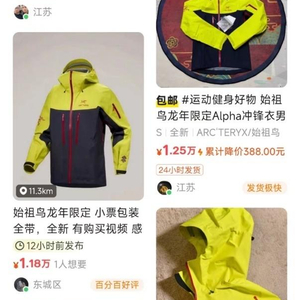 在各大二手购物平台上,始祖鸟龙年限定冲锋衣的最高价格已被炒至12500元,而该款冲锋衣的初始售价为8200元,有网友戏称“原价买到已是赚到!”