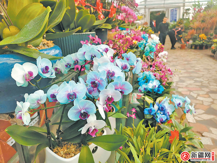 新疆网讯(文/图全媒体记者江斌伟)花开吉祥,花开富贵。过新年迎新春,在鲜切花市场买几枝花朵硕大娇艳的吸染牡丹菊,或是进口粉色郁金香以及色彩各异的红掌;再或者去盆栽花市买几盆寓意吉祥的腊梅、兰花,造型独特的茶花或多肉植物……逛花市、选购花卉已经成为不少市民的新年俗。新年伊始,全媒体记者走访明珠花卉市场发现,随着一些新品种花卉“加持”,迎春花市百花争艳,亮点频现,让买花的市民沉浸在一路芬芳中。