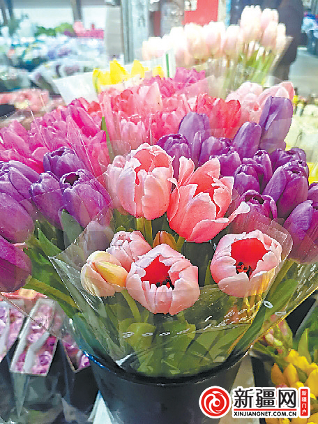 新品种,孕育新商机。鲜切花的“抢手货”并非只有吸染牡丹菊,还有进口粉色郁金香。