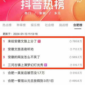 一石激起千层浪。#安徽文旅连夜听劝##来给安徽文旅上大分##安徽文旅已经一小时没更新了#多个话题连续多天占据社交平台热搜榜单。