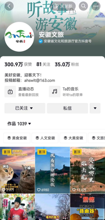 以量变引质变,“安徽文旅”抖音账号两天时间,从18万粉丝涨至35万,粉丝数量涨了接近一倍。