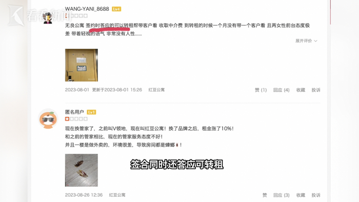 记者还注意到,有网友反映,这家公寓在2023年,运营方由微领地变更为红豆公寓,此后租金涨了10%,签合同时还答应可转租。