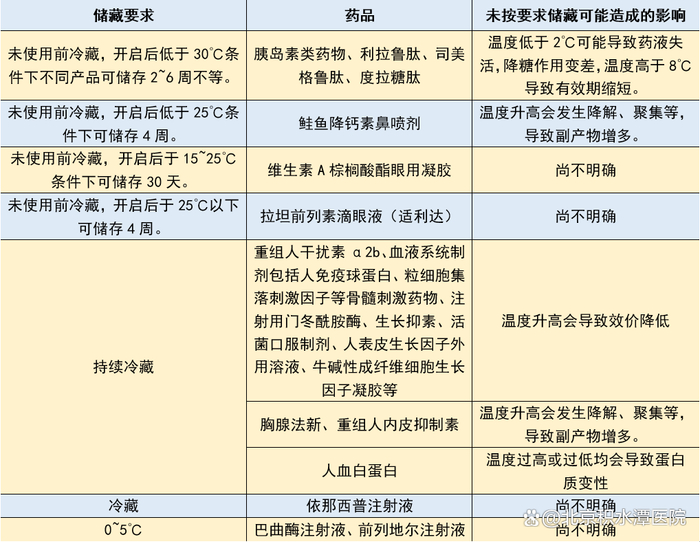 对于部分药品未按规定要求储存可能导致的影响详见下方表格↓。在使用药品时应注意药师的交代及说明书的要求,只有按照规定储存并使用药品,才能保障药物的稳定性,进而保障疗效。