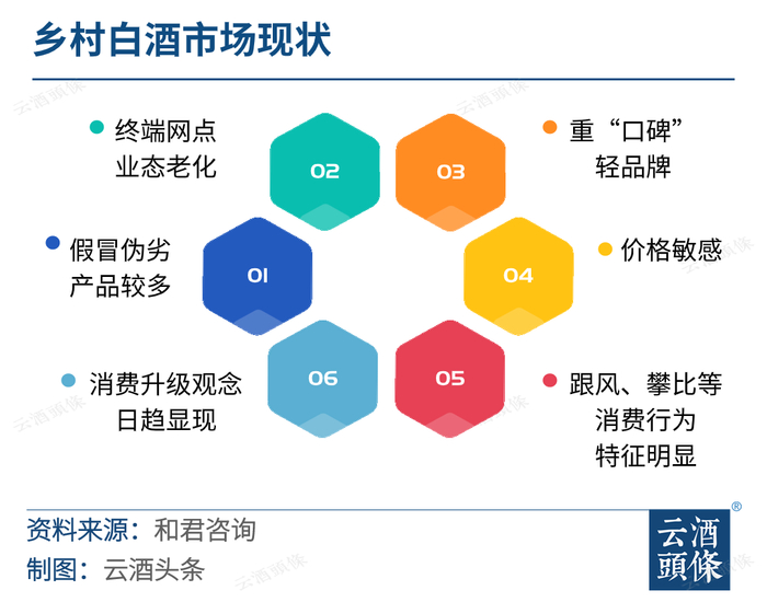 据行业公开数据统计显示,依托乡村庞大的人口基数,白酒市场规模已在千亿以上,消费特征在当下几个方面尤为突出。