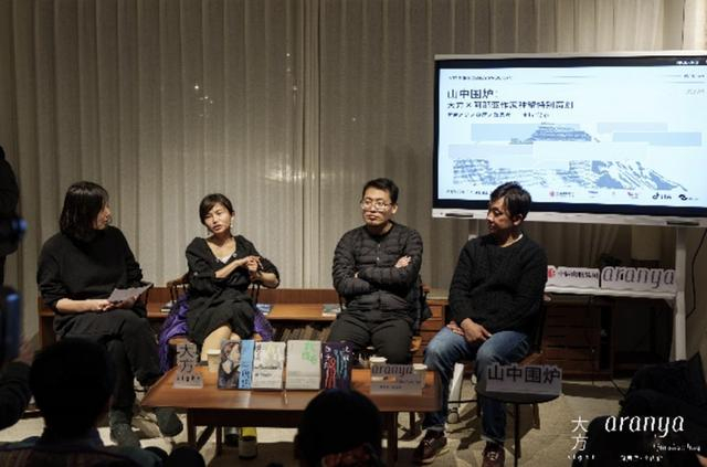 山中围炉:青年作家辽京 索南才让 糖匪 魏思孝(嘉宾由左至右)