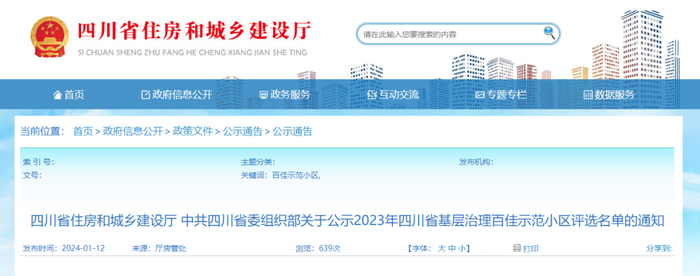 四川基层治理百佳示范小区,正在公示!