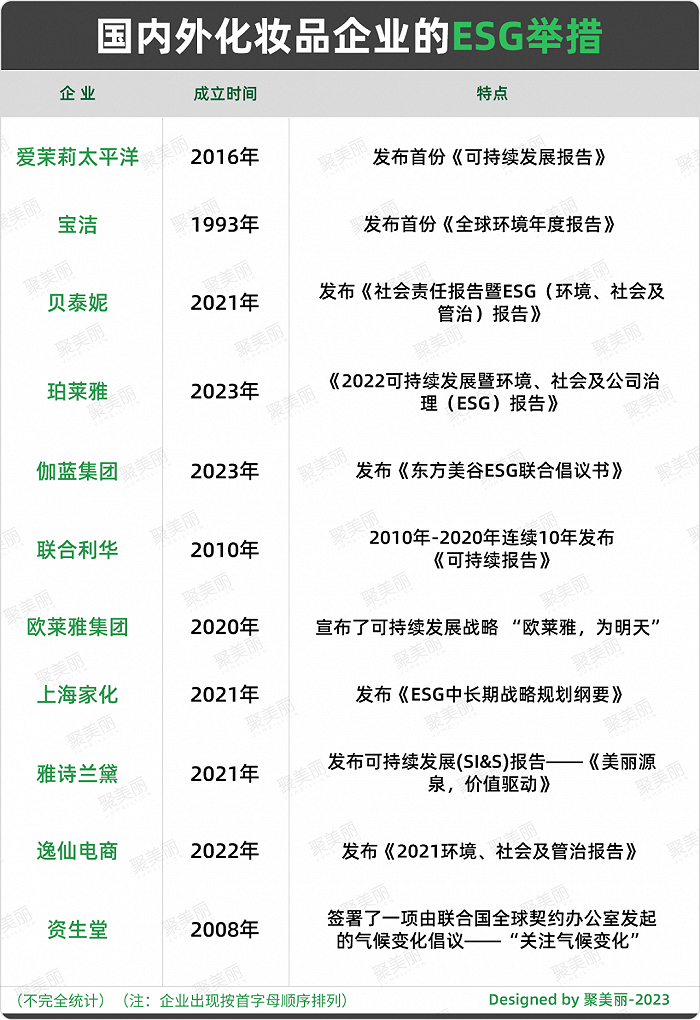 从品牌端的相关动向来看,美妆品牌多以包装、原料配方、生产能源、工艺等在可持续这件事上发力,此外,国内外美妆头部注重ESG(Environmental环境、Social社会、Governance治理的缩写,是一种关注企业环境、社会、公司治理绩效而非传统财务绩效的投资理念和企业评价标准)的建设,践行可持续发展理念,也算是例证。