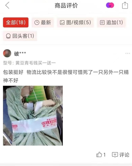 记者了解到,电商平台的活体动物大多是通过普通快递邮寄。动物被装在盒子里进行运输,由于环境恶劣,缺乏空气流通,极容易造成盒内的动物死亡。从消费者评价看,这些活体动物在邮寄途中死亡、到货后七天不到死亡的情况非常常见。