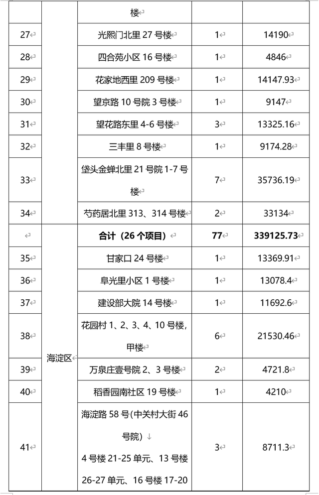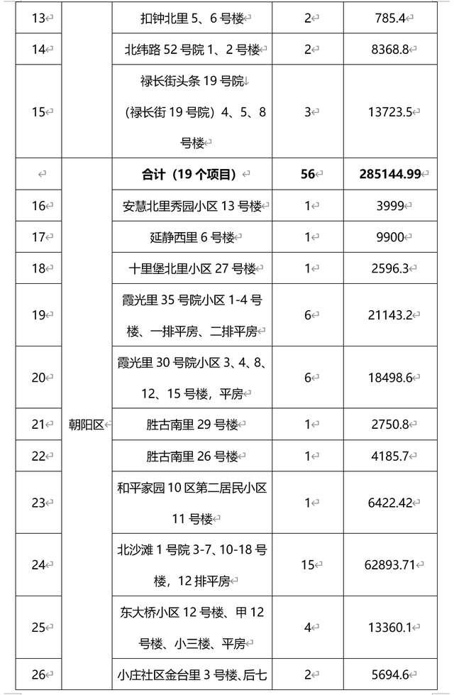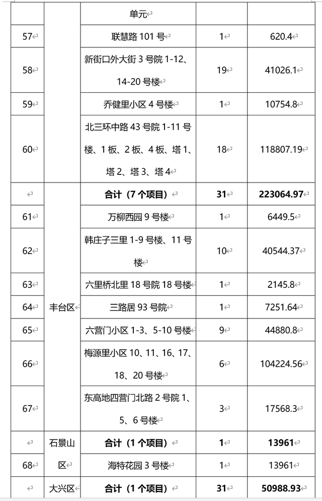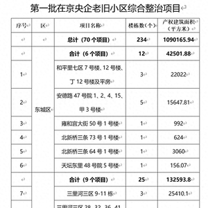 央企在京老旧小区综合整治工作联席会审议通过了央企在京第一批项目的纳入申请。经组织各区对住宅楼栋、面积等信息审核后,现对第一批符合条件的央企在京老旧小区综合整治项目(见附件)予以确认。