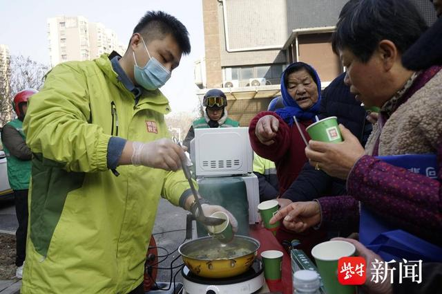 考虑到有些居民腿脚不便,没法下楼喝粥,南京锅圈食汇商业管理有限公司企业员工、社区志愿者们一起带着腊八粥走进高龄独居孤寡老人与残疾人居民的家中,送上腊八粥、食品礼盒的同时,也送上了节日的祝福。年过九旬的老人收到礼物后开心地说“谢谢”。