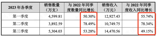 2023年前三季度,吸入用布地奈德混悬液的销量和销售收入依然保持高增长,其中收入合计3.81亿,同比增长58.7%。