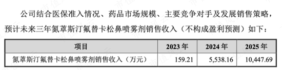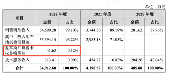 不过氮䓬斯汀氟替卡松鼻喷雾剂因国内首个上市,上市一段时间内暂未纳入医保,开始主要以院外DTP药房销售为主,还在推广期,市场没有完全打开:2022年只上市销售了1个多月的收入是41.63万,2023年销售收入公司预计有159万。