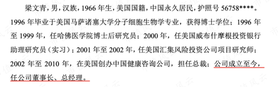 梁文青,曾是哈佛医学院博士后研究员,生物医药专业背景,从业后从事医学投资,可以说既有产业背景又有投资背景,创立长风药业后一直担任公司的董事长兼总经理。