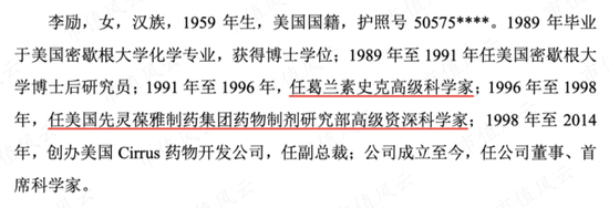 李励,曾在美国葛兰素史克、先灵葆雅等医药巨头担任科学家,创立长风药业后担任首席科学家。