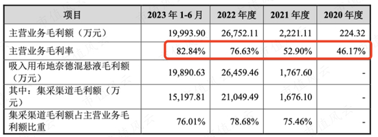 高技术、高壁垒体现在已经上市的产品上是,毛利率普遍较高。报告期公司的毛利率(基本由吸入用布地奈德混悬液贡献)分别为46.17%、52.90%、76.63%、82.84%,起量后单位成本下降,毛利率开始企稳走高。