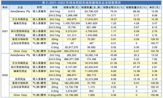 (2021年-2022年样本医院布地奈德销售情况,医药经济报)