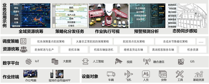 建立全域地面运行资源统筹与运行保障的可视化体系,实现运行保障的高效协同;基于运行控制塔的一体化地面指挥平台,实现实时态势感知,对生产运行中的单位和人员开展实时调度,提供生产运行环环紧扣与实时可视,以数据赋能运行智能策略。