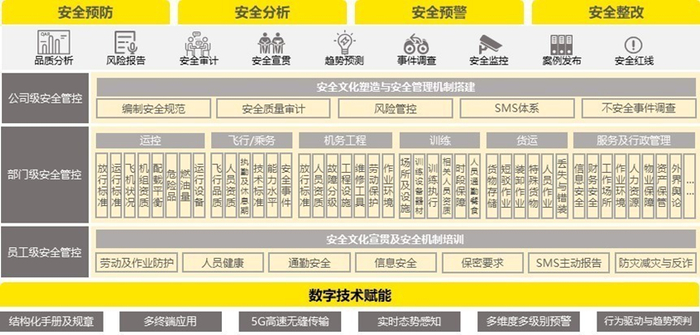 敏捷洞察航空安全形势,实施动态监管和趋势预判,科学管理风险源库和不安全事件库。围绕公司、部门、员工三个级别,有效收集、制定并验证安全信息、安全措施和安全手段,完善公司运行标准库,输出安全绩效。通过模型透视不安全事件,形成闭环的整改机制。