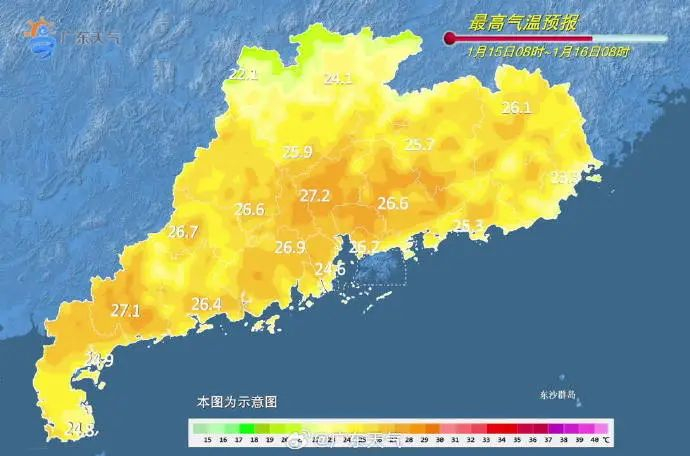 据悉,15日夜间-16日有东路弱冷空气渗透影响,19日夜间起新一股冷空气入粤,我省自北向南气温明显下降。