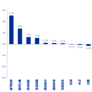 纺织服饰(0.1%):上周纺服板块上涨,其中纺织制造上涨,主因出口数据改善。