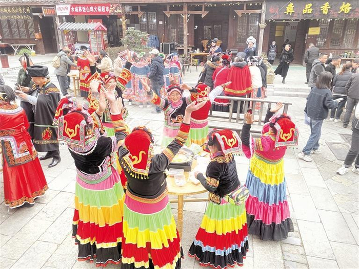 今年1月,围绕岁末年初的关键节点和六盘水冬季旅游客流旺季,六盘水市联动120余家经营主体开展凉都“五品五进”活动,让刺梨、茶叶、盘县火腿、人民小酒、农民画、民族手工艺品等特色商品,以便捷食品、礼包、伴手礼等产品形式,进驻景区、酒店、高铁站等。同时,支持鼓励水城羊肉粉、牛肉粉、水城烙锅、老字号企业、名优小吃品牌店等在景区、高速服务区内开展经营。