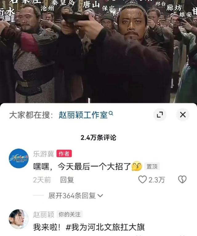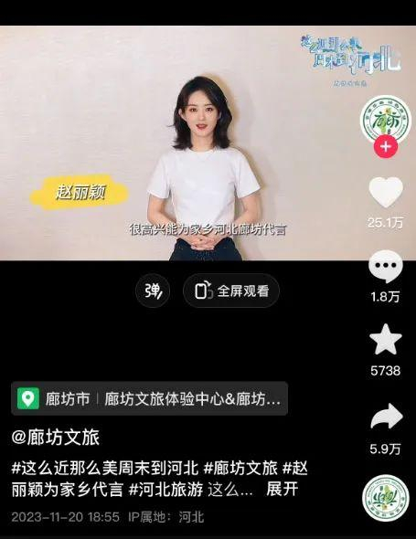 在“河北文旅”发布的视频中,赵丽颖也留言称:“我为河北文旅扛大旗。”去年11月,赵丽颖曾发布视频为家乡廊坊代言。