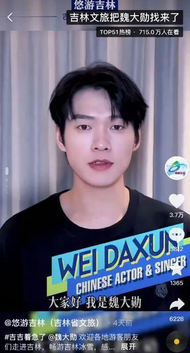 “吉林文旅”把魏大勋也找来了,东北小伙魏大勋在视频中说:“各位喜欢滑雪的朋友们,欢迎来到我的家乡中国吉林滑雪。”