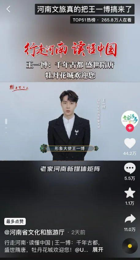 河南省文化和旅游厅发布了王一博相关推介视频。“作为一个洛阳人,和中国大部分地区一样,打招呼的方式都是:您吃了吗?”王一博在视频中用“您吃了吗”引出了洛阳美食和城市千年的底气。
