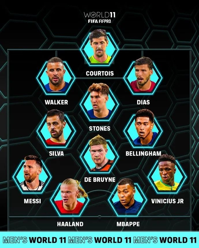 最佳阵容:库尔图瓦、沃克、斯通斯、迪亚斯、B席、德布劳内、贝林厄姆、梅西、哈兰德、姆巴佩、维尼修斯