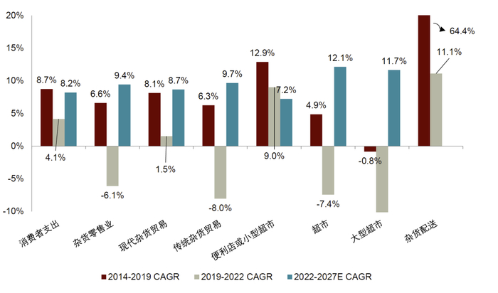 ► 小型门店有望受益于积极因素并持续扩张。迷你超市的规模通常小于普通超市和大型超市,面积介于150平方米到400平方米之间,靠近社区,有利于满足消费者的日常需求。消费者在居民区附近和现代食品杂货店购物的偏好源于疫情引发的长期行为变化。