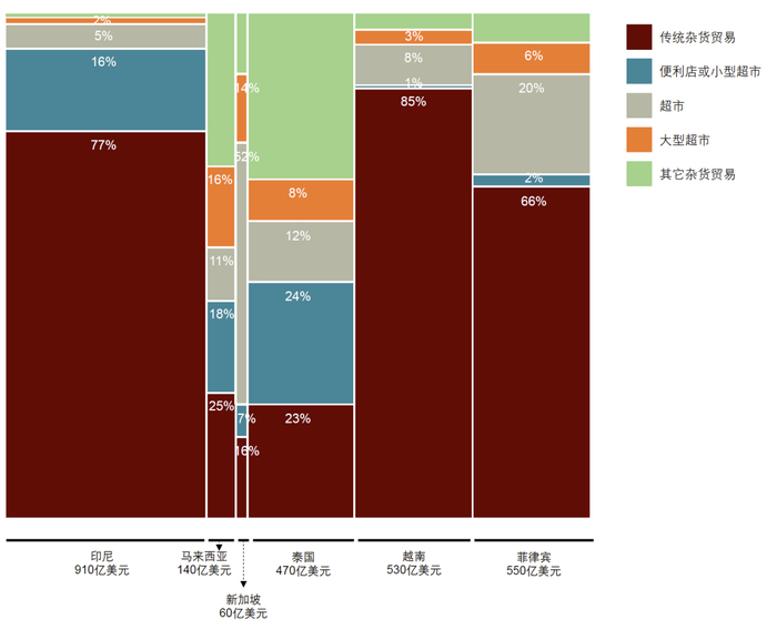 图表2:2022年东盟六国的不同食品杂货零售业态
