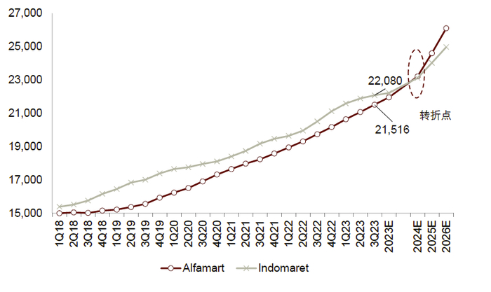图表35:弥合差距——Alfamart门店数量有望在2024年超过Indomaret