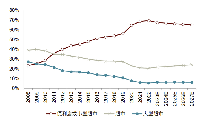 图表13:从门店数量来看,2022年便利店或迷你超市的市场份额主导地位更加明显