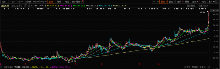 1月15日,嘉益股份股票开盘后快速拉升,盘中一度达62.86元/股。截至15日下午收盘,公司股价报收于60.67元/股(日涨幅为15.83%),创下公司股票自2021年6月25日上市以来的新高。