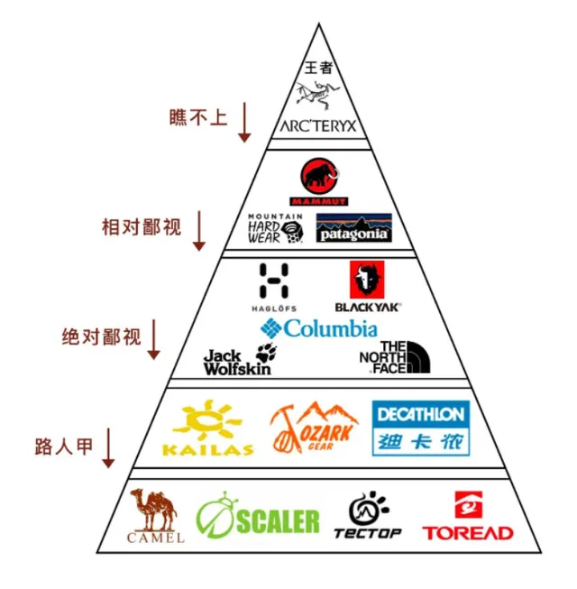 坦率来说,鄙视链虽然是一件非常下头的事,但却完美符合人性。不管任何领域,一定要人为地分出三六九等,然后通过上对下鄙视的方式,从中寻求心理上的快感。套回到户外用品来说,穿始祖鸟的中年人,当然会不自觉地对北面、哥伦比亚等牌子产生优越感,对穿迪卡侬的“众屌丝”心怀同情,这种由品牌带来的一系列心理上的优越感正在刺激中年人源源不断地为始祖鸟买单。