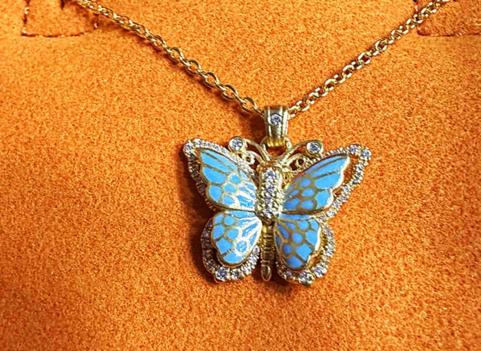 这位店长介绍,古法黄金珠宝技艺主要包括錾刻、花丝、镶嵌及烧蓝等,这两年逐渐流行开来,各家珠宝店都在推古法金工艺,工费也相对较高,“我们店铺里古法金饰品工费最低是45元/克,贵一点的产品,比如加了复杂的手工花丝或者镶嵌工艺的,工费可以到70~90元/克。”