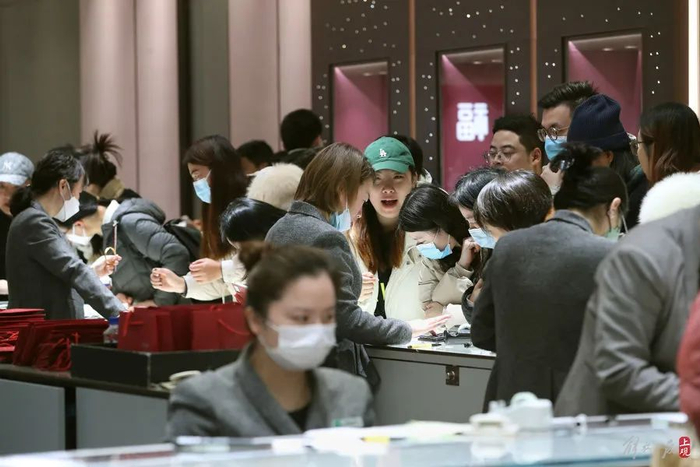 “店里的氛围真的有点上头,大家都像是抢购一样,我看到没有人空手出去的,基本是每人一件起步,我前面有个上海本地小姐姐,一口气买了20多万元的金饰。”