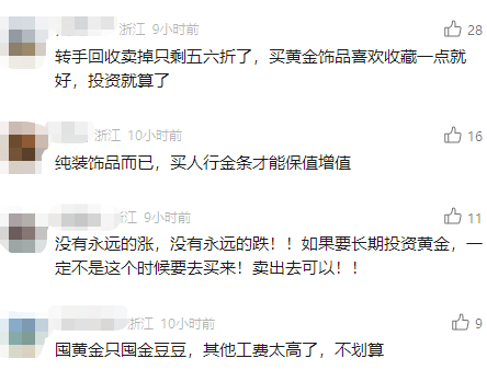 乐乐告诉记者,刚刚过去的这个周六和朋友逛金店,看中了一款古法金的蝴蝶饰品。正打算付钱,朋友说这个品牌的上海豫园店在搞活动,满1000元减100元,满5万元还送首饰盒子,比杭州这边活动力度要大。