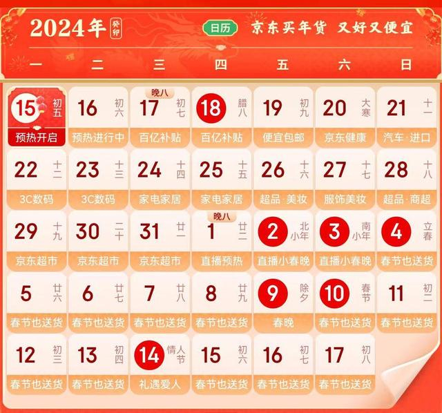据悉,今年京东年货节将持续到2月17日,分为预热期、开门红、场景期、小年期、春送期等五个阶段,并将通过百亿补贴日、便宜包邮日、超级品牌联盟、超级小年直播夜等活动,让消费者以实惠价格一站式购齐特色年货节礼。