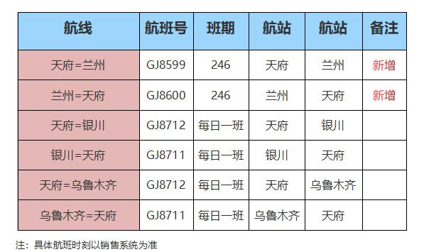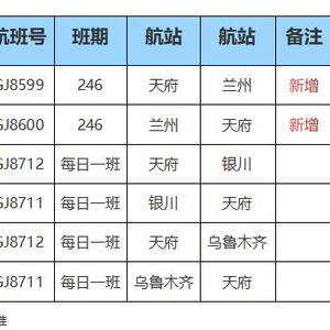 1月26日起,长龙航空新开首批11条国内航线。东经103°线穿过成都和兰州,成都往返兰州航线,是四川和甘肃两省之间最为热门的一条空中航线,长龙航空特此新增成都天府=兰州航线,并额外加班天府=银川与天府=乌鲁木齐航线,具体航班信息如下: