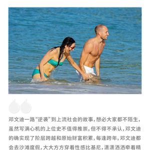 记者艾瑞克对她的评价一针见血:邓文迪不会爱上某个人,她只会爱上某种生活。