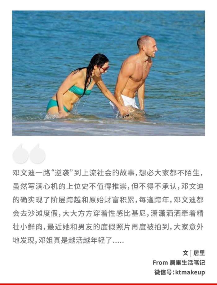 每逢跨年,邓文迪都会去沙滩度假,大大方方穿着性感比基尼,潇潇洒洒牵着精壮小鲜肉。