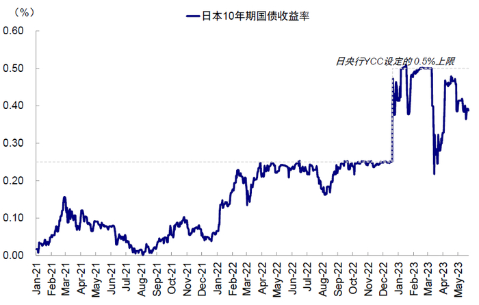 图表:偏鸽的货币政策预期使得日本10年期国债结束对0.5%上限的冲击