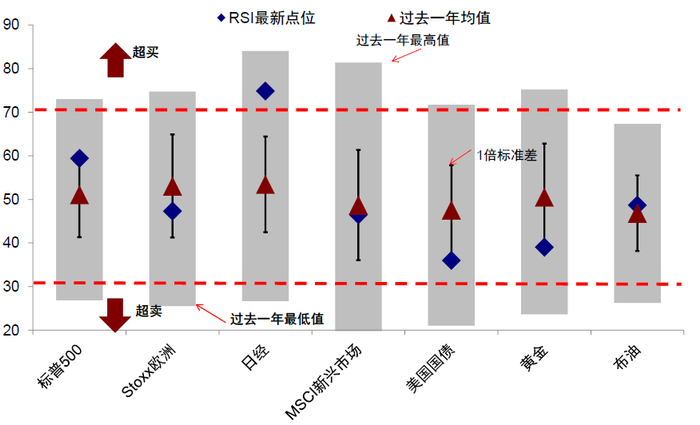 图表:日经225指数的RSI点位自5月15日开始持续高于70,维持于超买区间