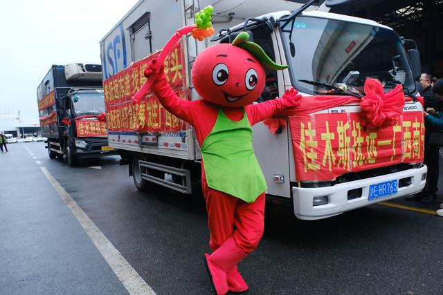 南宁“老友”用当地特色水果卡通形象迎接抚远蔓越莓车队,可爱又有爱