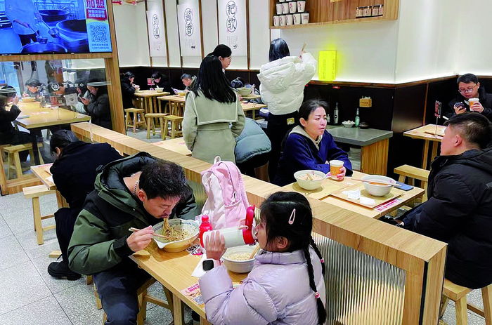 顾客在呼啦面馆就餐