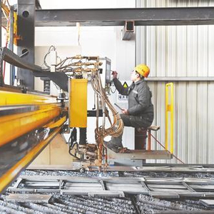 1月9日,在金环建设集团生产车间,工人操作数控切割机进行下料。 河北日报记者 张晓超摄