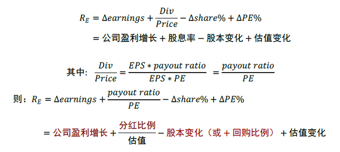 追本溯源,股票预期收益率中股息率及回购为重要的组成部分。股票收益率主要由四个因素影响,包括公司盈利增长、股息率、股本变化和估值变化,一般企业进入中低增速阶段,盈利增长相对较低,估值如无市场流动性变化亦保持相对稳定,股息率和回购比例成为股票预期收益率的重要组成部分。此外,股息率可以进一步拆解为分红比例(payout ratio)除以估值(PE),因此公司层面可影响股票收益率的因素主要是盈利增长、分红比例以及回购比例。一般而言,低增长阶段意味着低资本开支,企业应具备较强分红或回购能力,企业主观层面可影响股东投资回报率。