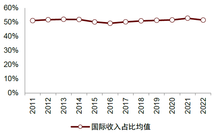 ► 从负债率上看,分红比例提升初期,资产负债率在20%低水平。Sysco在2000-2010年资产负债率均值为20%,整体维持在较低水平,为提高分红提供保障。随着业务成熟和稳定,公司持续回购股票,资产负债率持续上升,以提升股东回报率。公司2022年资产负债率达到52%,整体控制在合理水平。