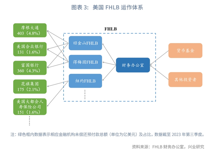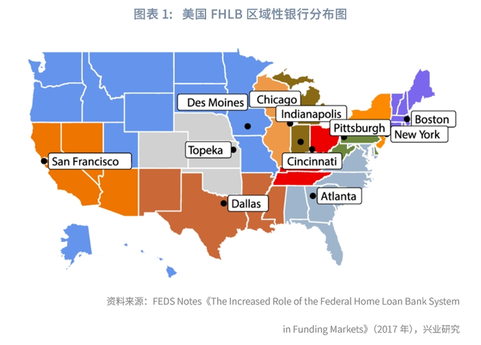 目前FHLB由11个独立的区域性银行以及财务办公室组成,受到美国联邦住房金融局(FHFA)的监管。其中,财务办公室为FHLB管理债务发行的机构。FHLB的具体运作方式为: